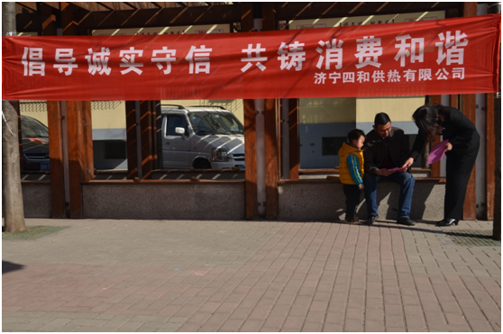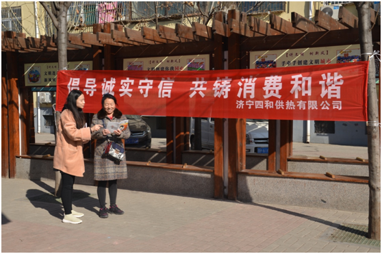 2019年3月15日上午,濟寧四和供熱有限公司客服部宣傳小隊前往吉祥社區(qū),開展以“倡導誠實守信 共鑄消費和諧”為主題的宣傳活動,為百姓進行義務(wù)宣傳。