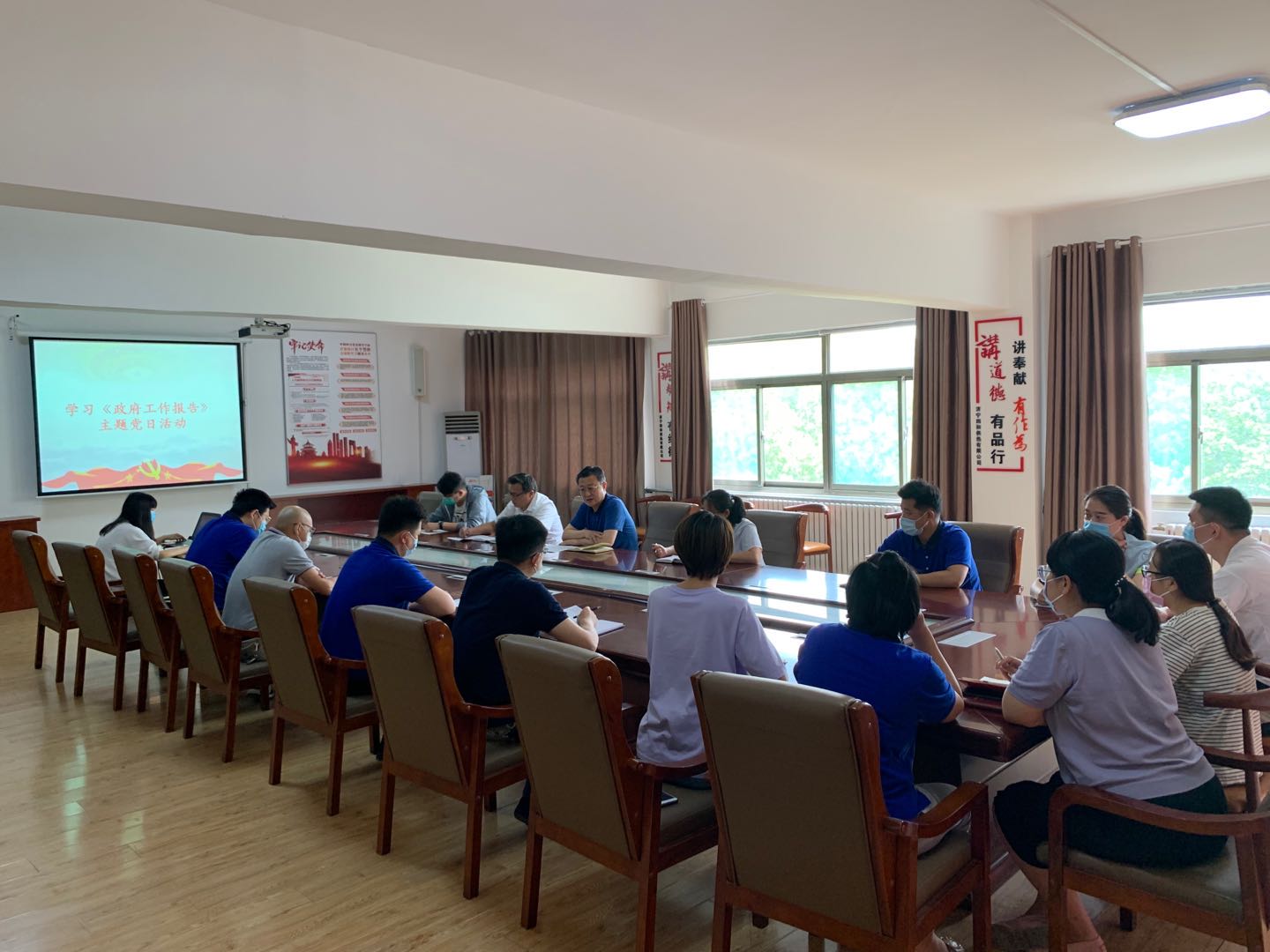 2020年5月29日上午,四和供熱黨支部在公司四樓會議室召開主題黨日活動,共同學習在第十三屆全國人民代表大會第三次會議上的《政府工作報告》。會議由黨支部書記李聲播主持。