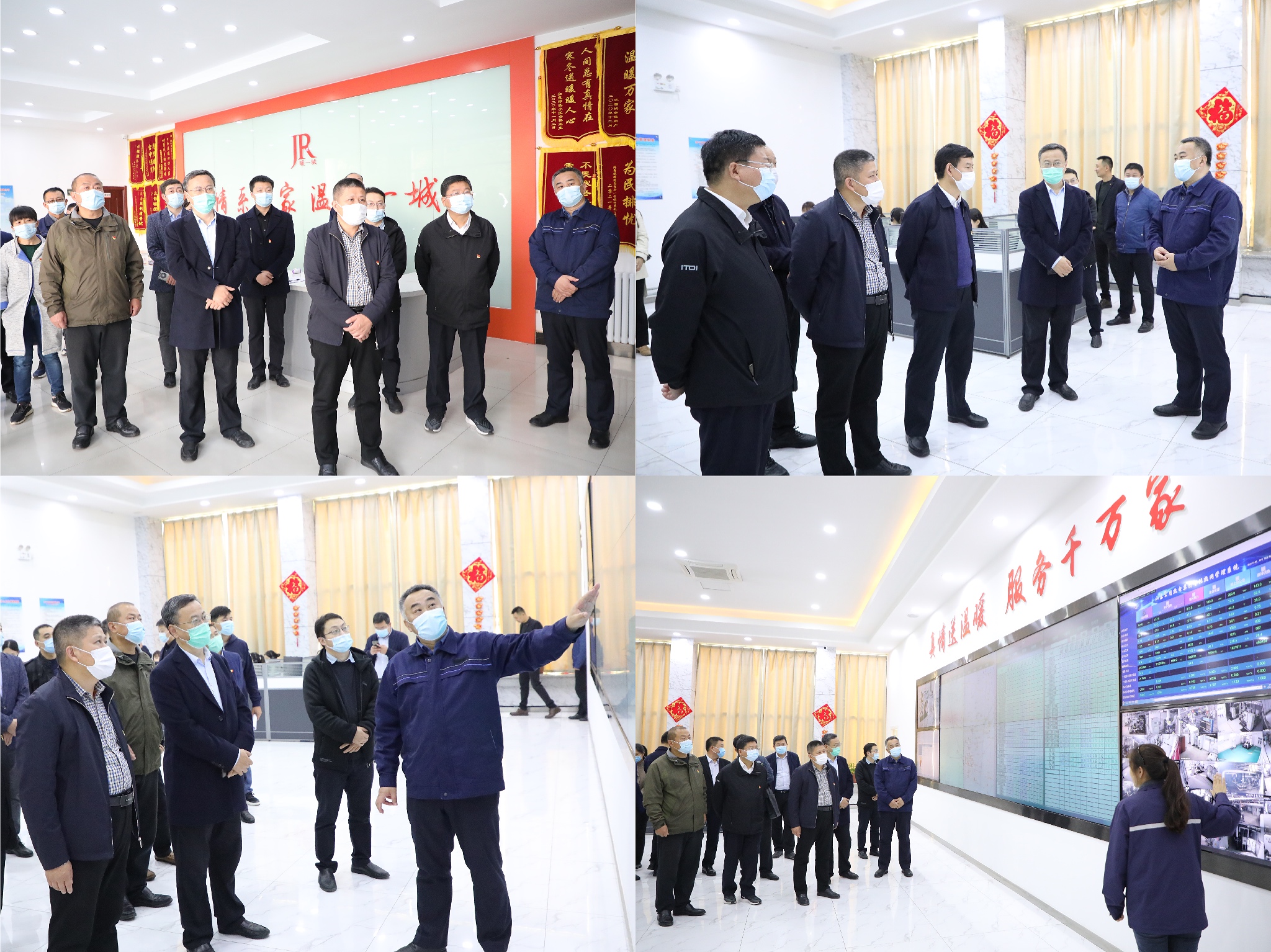 觀摩團(tuán)一行首先在客服中心觀看了熱源替換項(xiàng)目現(xiàn)場(chǎng)影像介紹,相關(guān)負(fù)責(zé)人向觀摩團(tuán)講解了西部熱源替換工程的基本情況。隨后參觀了話務(wù)中心和監(jiān)控中心,詳細(xì)了解、參觀了話務(wù)派單系統(tǒng)、智能熱網(wǎng)管理系統(tǒng)、管網(wǎng)分布、今冬供暖工作等情況,并針對(duì)供熱相關(guān)問題現(xiàn)場(chǎng)進(jìn)行了答疑。觀摩團(tuán)對(duì)公司充分展現(xiàn)責(zé)任意識(shí)與擔(dān)當(dāng)精神,積極做好各項(xiàng)供熱準(zhǔn)備工作給予了高度評(píng)價(jià)。