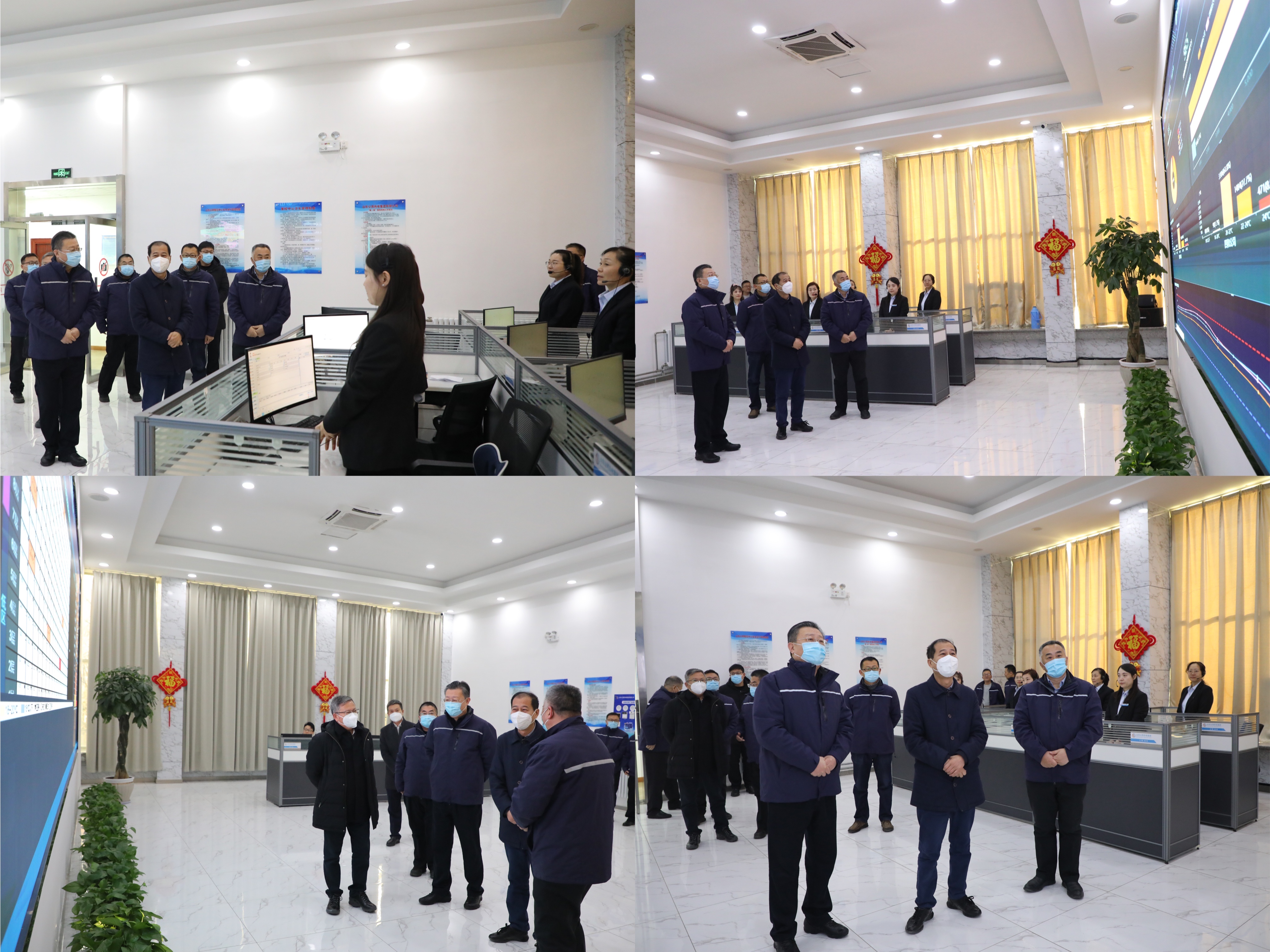 李魯一行前往公司監(jiān)控調(diào)度中心通過數(shù)智化供熱管控平臺實時查看了供熱管網(wǎng)、換熱站等運行參數(shù),詳細了解供回水以及用戶家中室內(nèi)溫度,對安全生產(chǎn)、節(jié)假日期間值班值守、突發(fā)情況應(yīng)急搶修等工作進行了詢問,并向堅守崗位的一線供熱工作人員提前送上了新春的問候和美好的祝福。相關(guān)負責(zé)人詳細匯報了四和供熱公司積極應(yīng)對寒潮雨雪天氣的有效措施、訪民問暖工作開展情況以及春節(jié)期間供熱服務(wù)保障部署。李魯對四和供熱公司積極采取各項保暖保供措施,全面做好冬季供熱服務(wù)工作給予了充分肯定,并就開展下一步工作提出了明確要求,他強調(diào),供熱工作是冬季提升群眾溫暖感、幸福感最直接的體現(xiàn)。要站在講政治、保民生的高度,時刻把群眾的冷暖放在心上,把社會責(zé)任扛在肩上,切實增強責(zé)任感和使命感,把供熱保障工作擺在首要位置,做優(yōu)服務(wù)、做實保障、做強管理,抓緊抓實抓細供熱服務(wù)保障各項工作;要加強日常管理,認真細致做好熱源保障、設(shè)備運行、物資儲備等工作,夯實供熱服務(wù)基礎(chǔ);要以群眾的滿意度為標準,不斷提升供熱服務(wù)質(zhì)效,及時響應(yīng)群眾反映的供熱問題,妥善處理群眾訴求;要主動加強研判分析,細化完善應(yīng)急預(yù)案,進一步增強應(yīng)急處置能力,科學(xué)應(yīng)對極端天氣和突發(fā)情況,守牢安全底線,為群眾溫暖過冬、平安過節(jié)提供堅實保障。